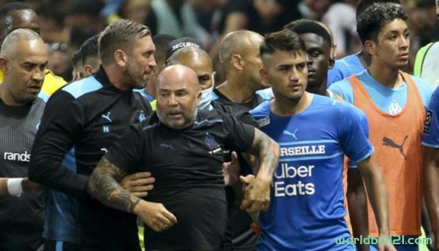 那场原本定于8月22日进行的较量,尼斯在第49分钟由丹麦前锋多尔贝尔率先破门,然而进行到第75分钟时,比赛却出现了意外情况不得不暂停。有球迷不断向场内投掷杂物,其中一个空矿泉水瓶砸中了正准备开角球的帕耶。法国中场被砸倒地后又迅速起身爆发,用塑料瓶回掷看台。随后阿尔瓦罗·冈萨雷斯也跑到场边广告牌前与尼斯球迷对峙。此举迅速将现场情绪严重激化。部分极端球迷突破保安的阻拦冲进场内,与球员发生冲突。随后双方球员、教练员亦发生了激烈争执。