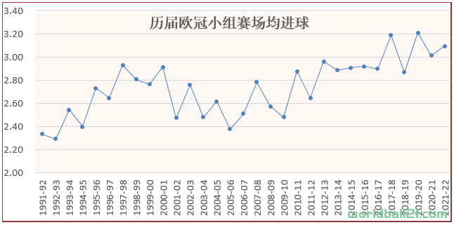 最多的场均进球则来自2019-20赛季,达到了3.208球。其次是2017-18赛季的3.188球,本赛季以3.094排名第三。