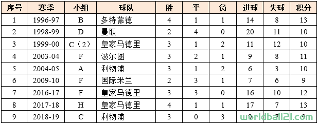 多特蒙德(1996-97):虽然是小组第二,但这个分数,显然也是轻松出线的。当年以相互交锋客场进球少的劣势屈居马竞之下。