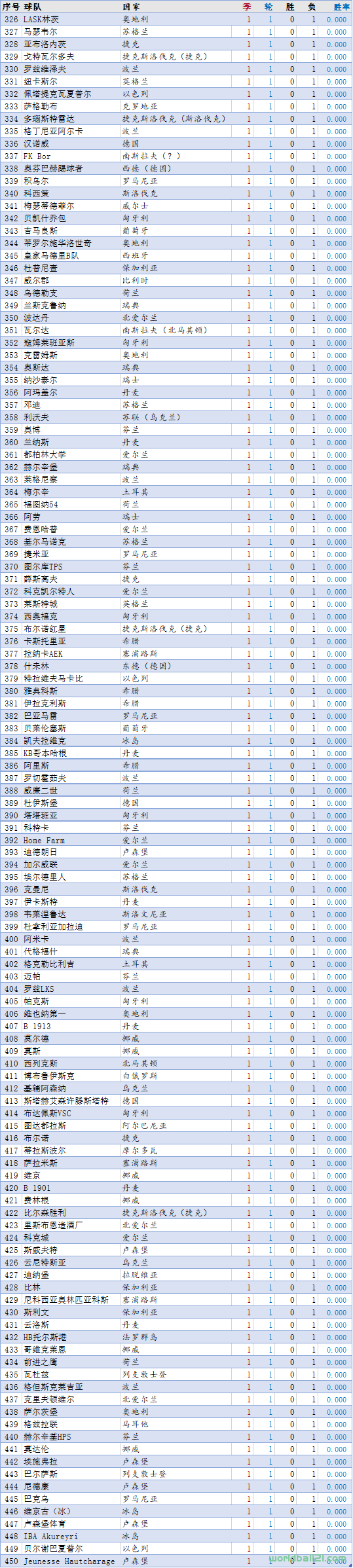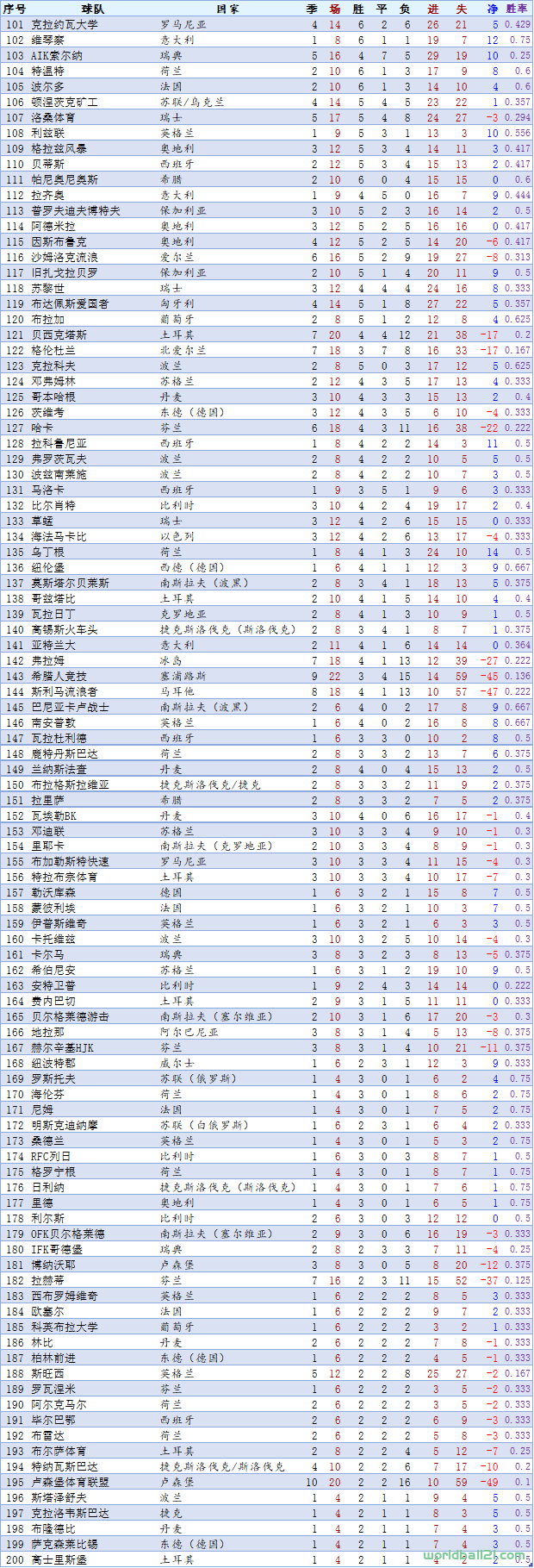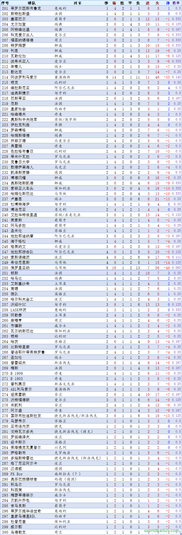 注1:根据各队胜负场次按3分制得分值进行排名,同分则依次比较净胜球、进球、冠军、亚军、四强、八强数。
