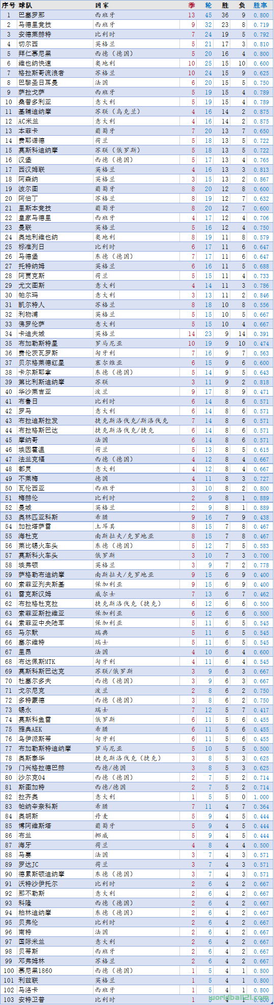 【优胜者杯】欧洲优胜者杯战绩大盘点