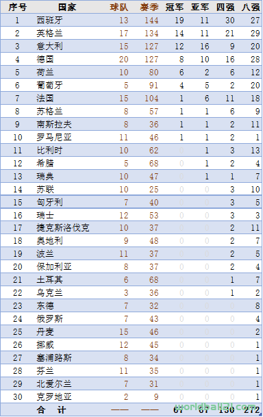 2、冠军榜(国家篇)
