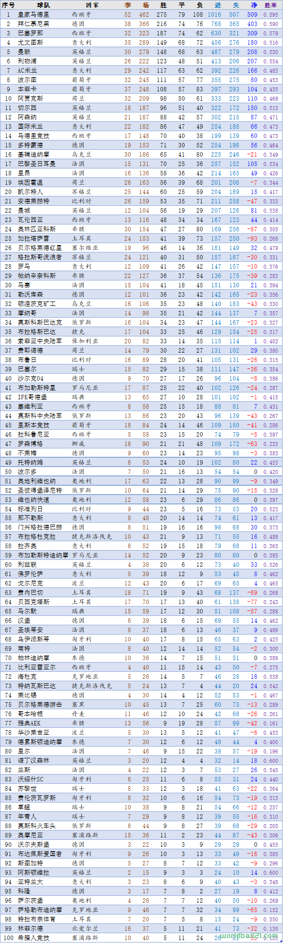 3、胜负榜前100名(球队篇)