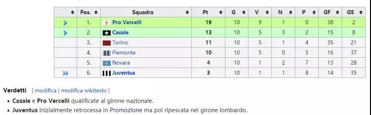 1912-13赛季,尤文图斯在伦巴第大区联赛中排名垫底