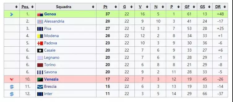 当年的北方联赛分成两组,一组12支球队。国际米兰被分在在北方联盟的B组,在22场比赛中仅仅赢了3场,这也就是所谓“倒数第一”的由来,另一个小组A组的倒数第一则是维琴察队。