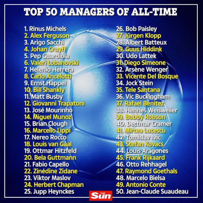 这样再看的话,《法国足球》榜单中的前七名除了弗格森,其他教头基本上都有在足球史上留下深刻印记的战术创举。